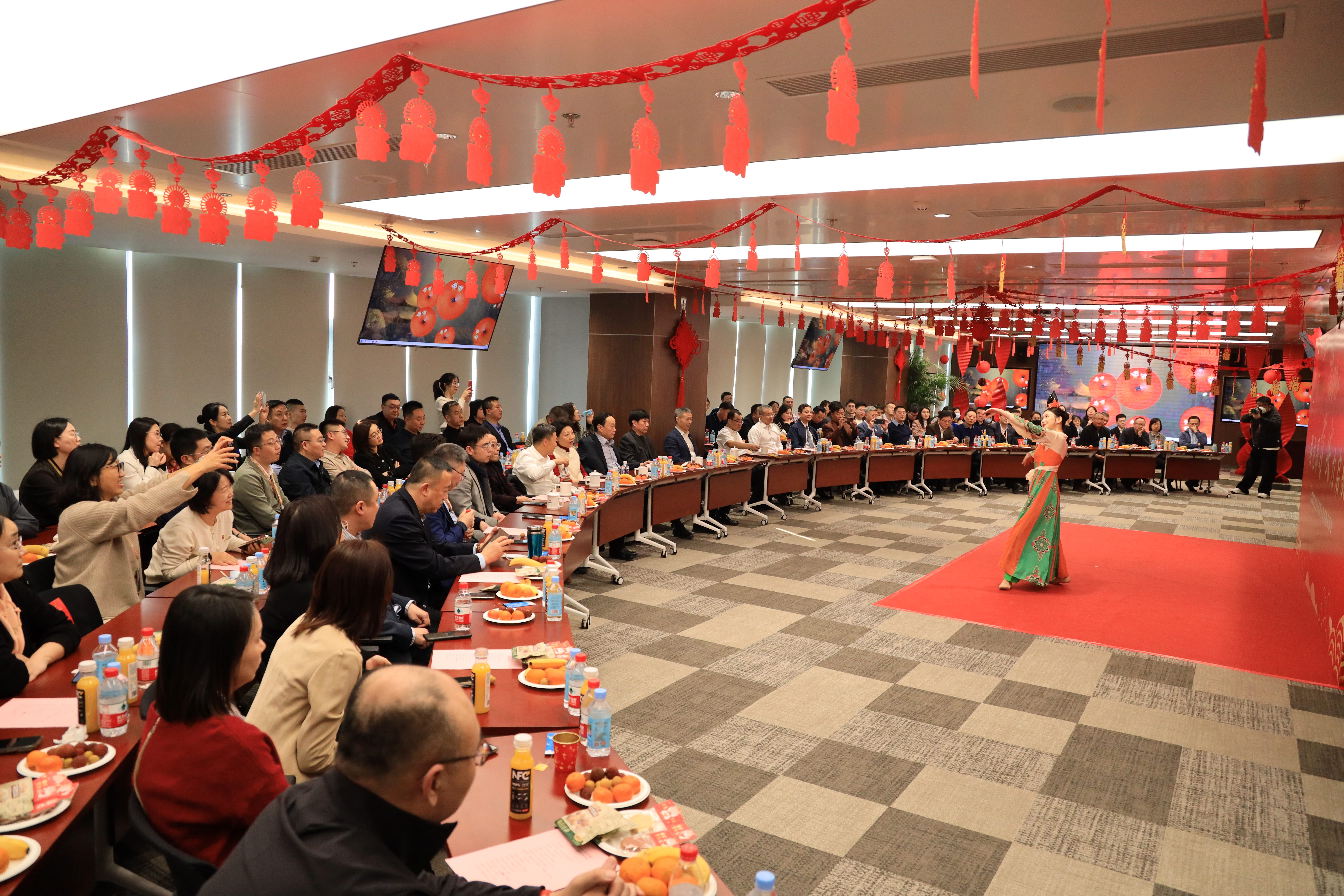 茶话会上,公司工会组织各子企业自编自导自演了文艺节目,琵琶独奏《阿佤人民唱新歌》、男声独唱《如愿》、器乐组合《经典曲目演奏》、舞蹈《唐韵》、古彩戏法《三仙归洞》、长笛独奏《大鱼》、女声独唱《幸福中国一起走》、器乐舞蹈组合《璀璨如歌》以及小合唱《向往》,主题鲜明、精彩纷呈,赢得了现场观众热烈掌声和阵阵喝彩,生动展现了首实人龙马精神、龙腾虎跃的蓬勃朝气。穿插其中的“龙行龘龘”猜谜语和“龙腾四海”游戏更是调动了每位观众的热情, 现场充分体现了团队浓浓的情感和年味。